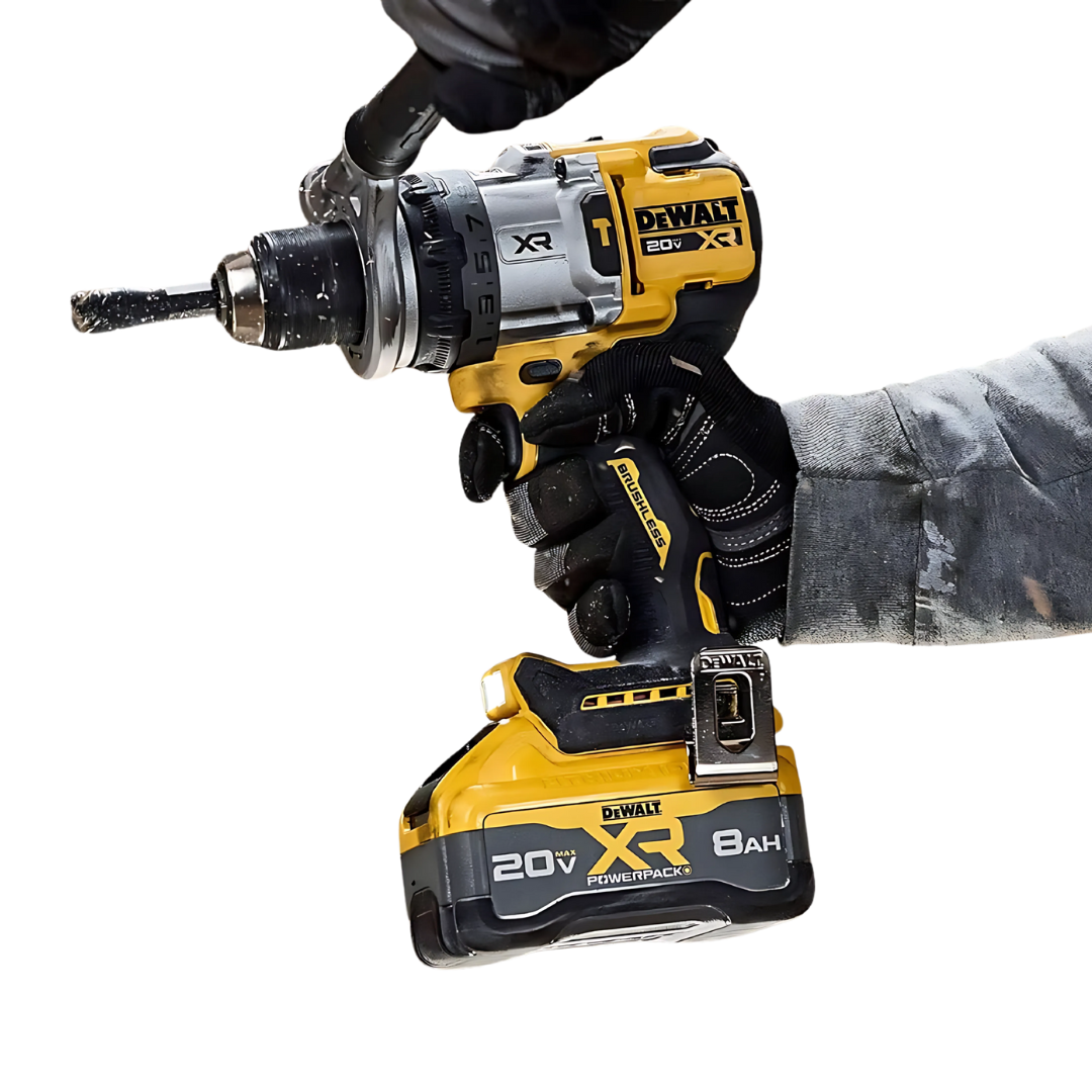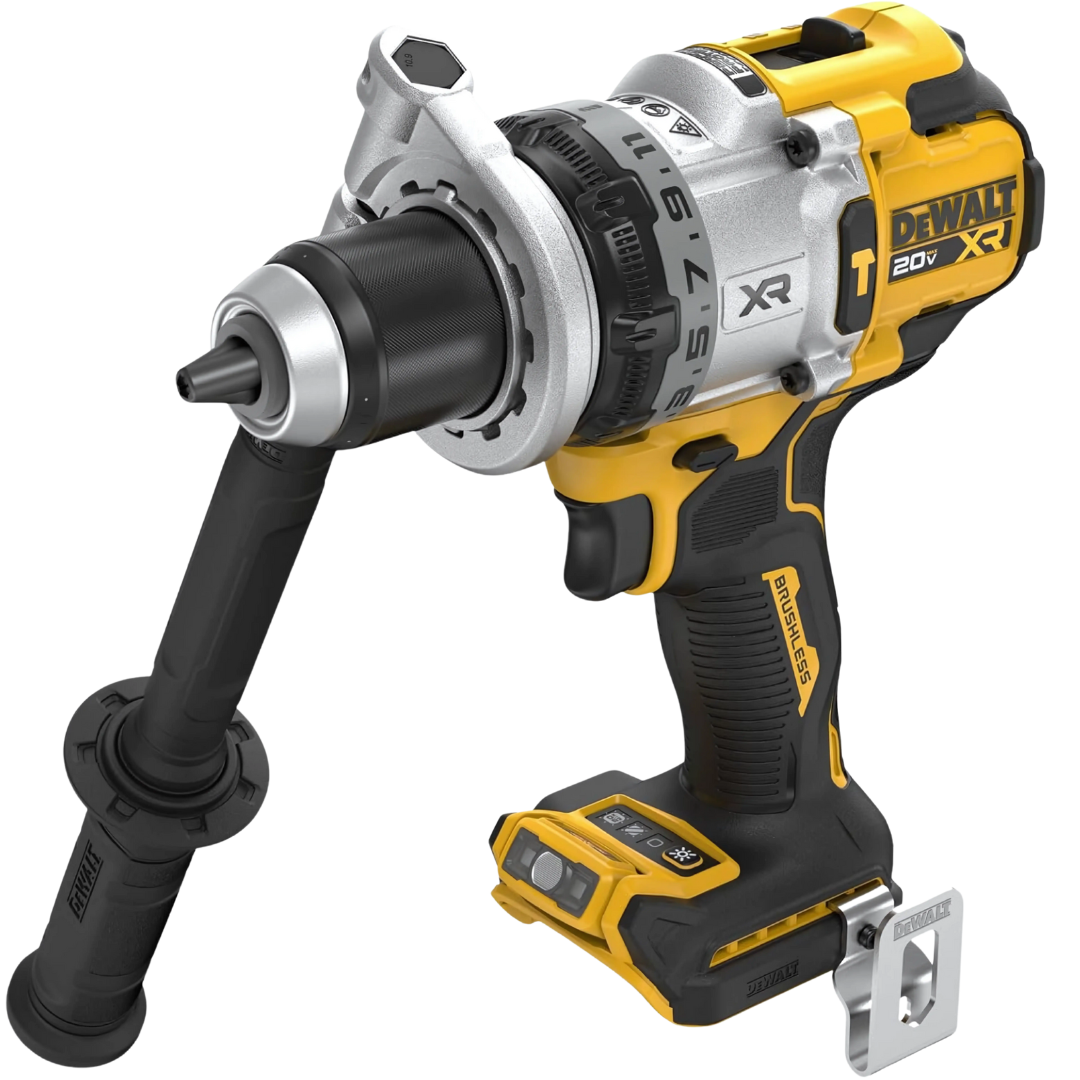 Tackle your toughest jobs with the DEWALT 20V MAX XR 1/2″ Cordless Hammer Drill (DCD1007B). As our most powerful 20V MAX hammer drill, it is engineered for demanding applications, delivering up to 275 holes per charge. This bare tool features an advanced anti-rotation system that senses and shuts down the tool if it detects excessive rotational motion, providing enhanced user control and safety. A red LED indicator alerts you when this system is engaged.