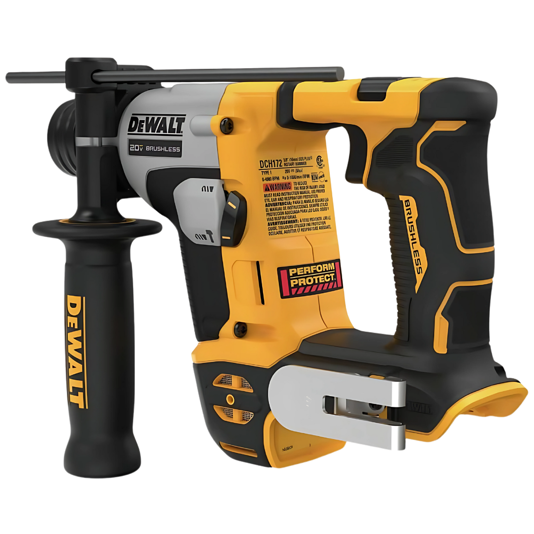 Conquer tight spaces with the high-performance DEWALT ATOMIC 20V MAX 5/8 in. Brushless Cordless SDS Plus Rotary Hammer (DCH172B)*. This compact and lightweight tool is engineered for efficiency, delivering 1.4 joules of impact energy for fast drilling in concrete. Its brushless motor and durable, German-engineered mechanism ensure reliable performance and a longer runtime on a single charge.